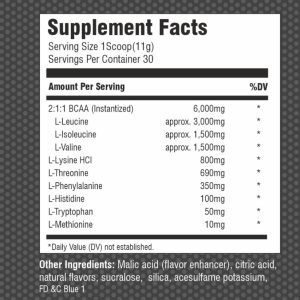 • Provides 6000 mg of BCAAs in the scientifically validated 2:1:1 ratio for muscle growth and recovery
