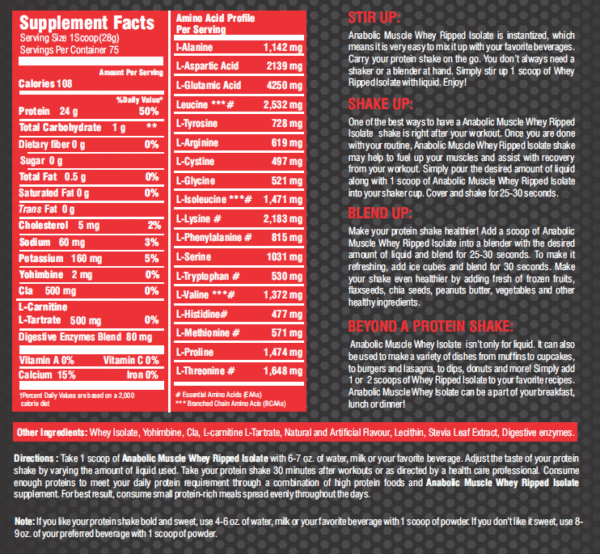 Anabolic Muscle Whey Ripped Isolate is an effective protein powder tailored for lean muscle support, enhanced recovery, and fat loss control, ideal for athletes looking to achieve a shredded physique.​