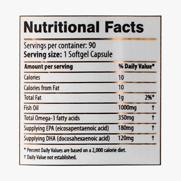 Contains concentrated EPA (180mg) and DHA (120mg) omega-3 fatty acids per softgel