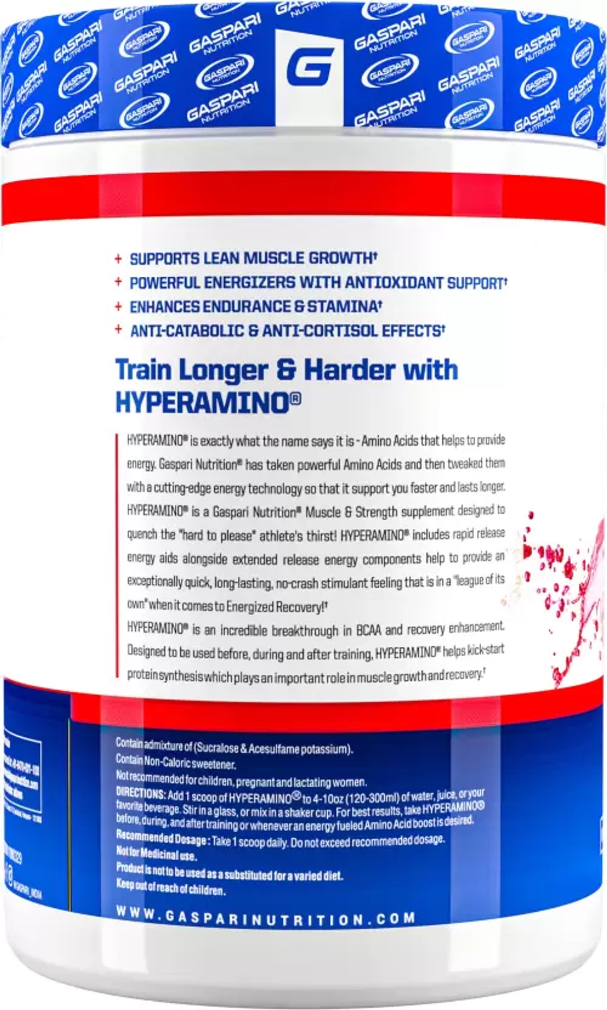 GASPARI HYPER AMINO ENERGY & RECOVERY FORMULA offers a powerful dose of amino acids and energy enhancement for comprehensive recovery and workout support.​