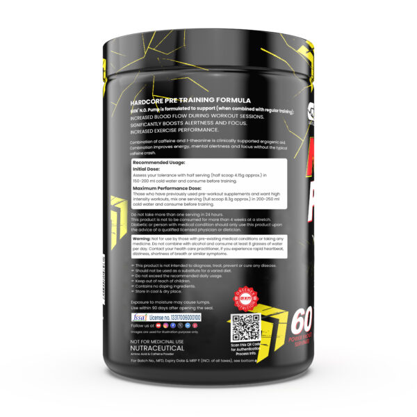 How to Use: Assess your tolerance with half a serving (4.15g) in 150–200ml cold water; for maximum performance, use one serving (8.3g) in 200–250ml water pre-workout. Do not exceed one serving in 24 hours