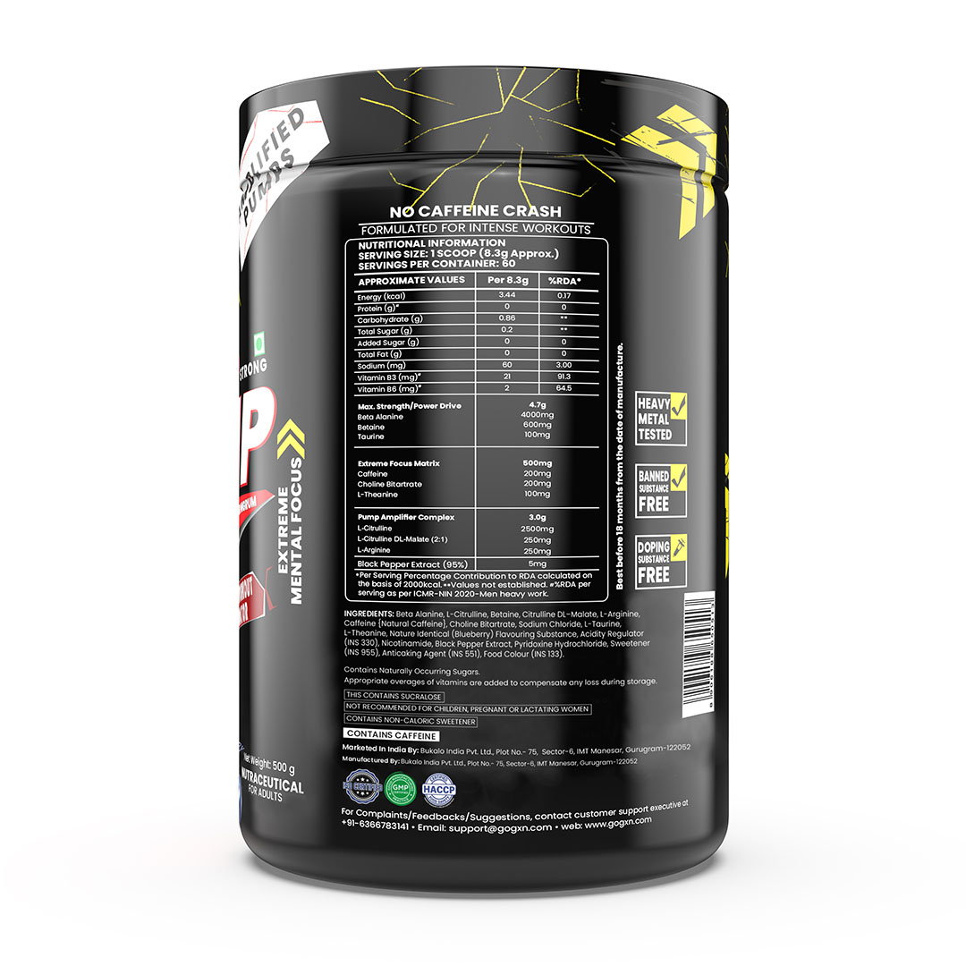 How to Use: Assess your tolerance with half a serving (4.15g) in 150–200ml cold water; for maximum performance, use one serving (8.3g) in 200–250ml water pre-workout. Do not exceed one serving in 24 hours
