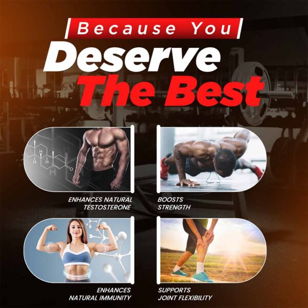 • Supports natural testosterone levels with T-Boost blend of Ashwagandha, Tribulus Terrestris, and Safed Musli​