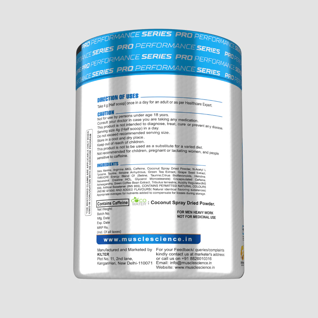 Ingredients: Beta-Alanine, Citrulline Malate, Betaine Anhydrous, Threonine, Glycine, Choline Bitartrate, Green Tea Extract, Coffee Bean Extract, Mucuna Pruriens, Piperine