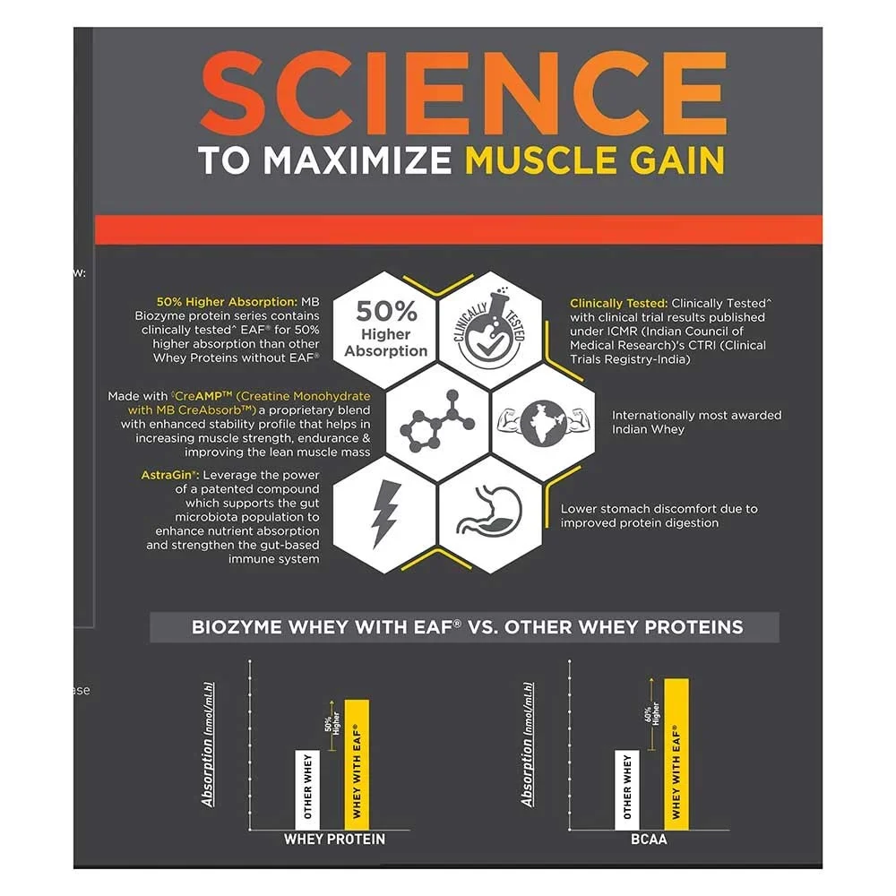 MuscleBlaze Biozyme Whey Protein is an effective protein supplement with added digestive enzymes to maximize absorption and muscle recovery, ideal for fitness enthusiasts seeking both performance and digestive comfort .