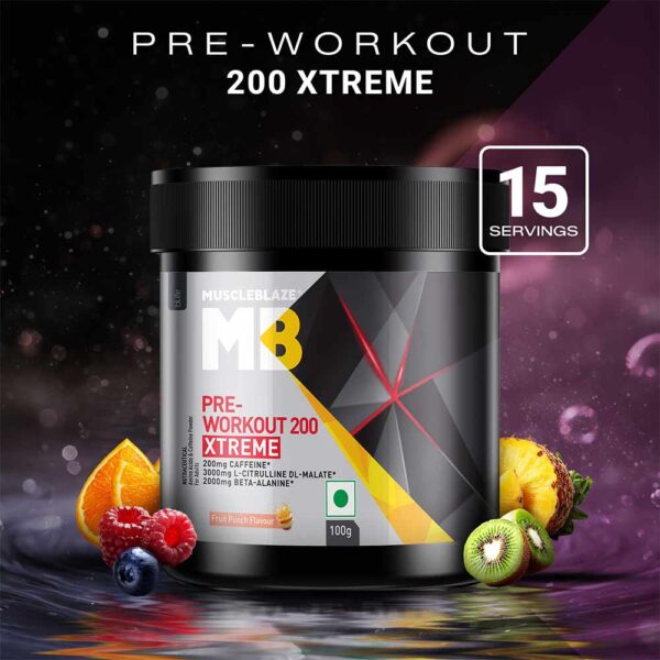 MuscleBlaze Pre-Workout 200 Xtreme is formulated to energize your training, improve focus, and enhance pumps for athletes and fitness enthusiasts ready to push their limits.