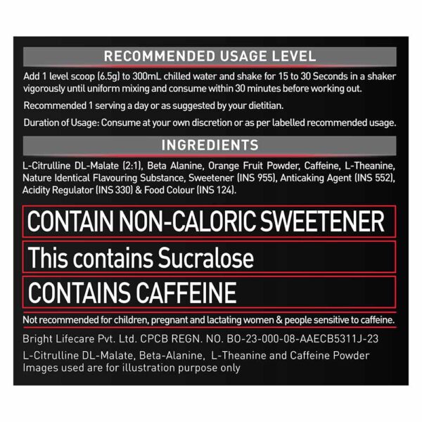 Add 2 level scoops to 300 ml of chilled water, shake well, and consume within 30 minutes before workouts