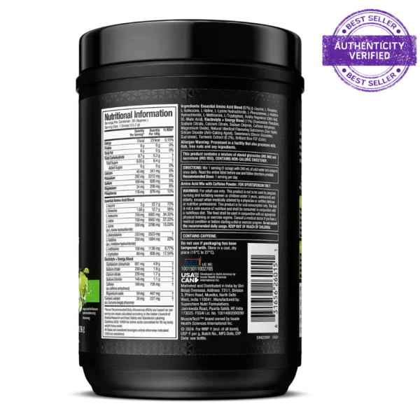 MUSCLETECH EAA ENERGY is a premium essential amino acid supplement designed to fuel muscle growth, enhance recovery, and provide clean, sustained energy without the crash. Delivering a balanced blend of essential amino acids to support muscle protein synthesis, this formula also includes natural caffeine sources for heightened focus and endurance during workouts. With hydrating electrolytes and great flavors, EAA Energy is ideal for pre-, intra-, or post-workout use to boost performance and accelerate muscle repair.
