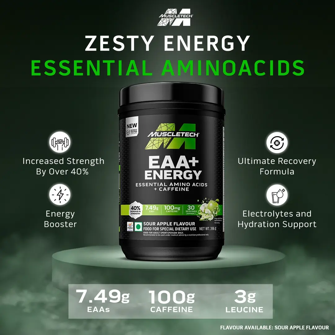 MUSCLETECH EAA ENERGY is a comprehensive amino acid and energy blend designed to enhance muscle performance, recovery, and focus for active individuals.​
