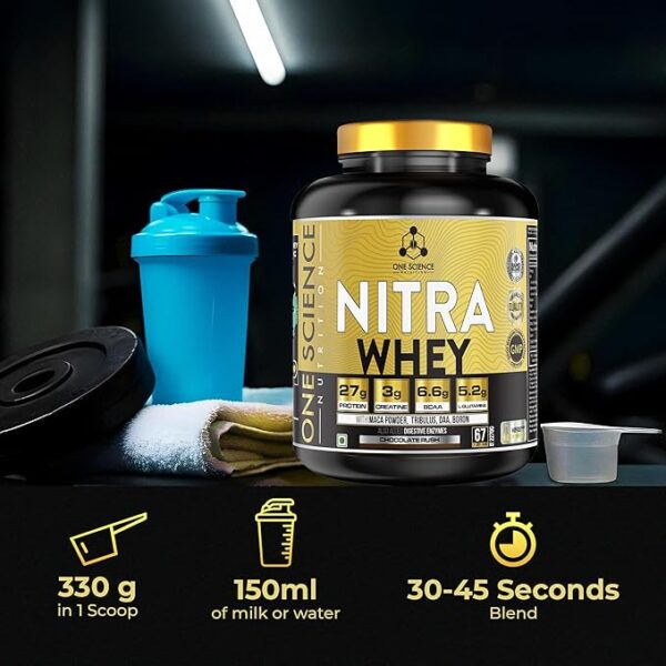 One Science Nutrition Nitra Whey Protein in Brownie flavor combines quality protein and creatine to provide a flavorful and effective supplement supporting muscle recovery, growth, and strength.