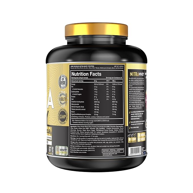 One Science Nutrition Nitra Whey Protein in Brownie flavor combines quality protein and creatine to provide a flavorful and effective supplement supporting muscle recovery, growth, and strength.