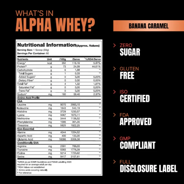 PS Alpha Whey Banana Caramel is a tasty and effective protein supplement ideal for athletes and fitness enthusiasts aiming to support muscle building and recovery with a delicious flavor option .