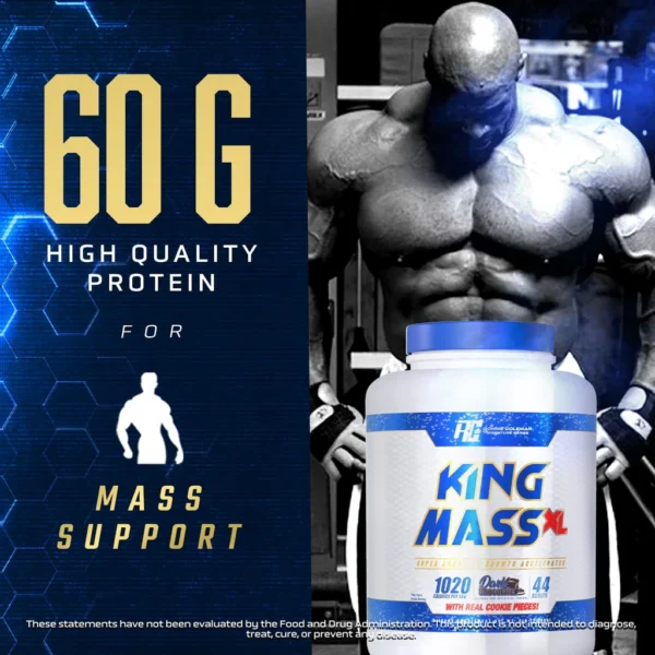 Ronnie Coleman King Mass XL is a powerhouse mass gainer formulated to support rapid weight gain, muscle recovery, and strength for athletes and hard-gainers. Each serving delivers a massive 60g of high-quality protein from a blend of whey, milk protein isolate, and casein, combined with complex carbohydrates, healthy fats, creatine, and essential nutrients for superior anabolic support. King Mass XL cranks up glycogen storage and recovery, fueling you after intense workouts and keeping your muscles in an anabolic state for maximum size and strength gains.