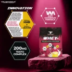 WHEY+ TESTO POWER COMPLEX is an advanced whey protein supplement supercharged with HMB, Leucine, and a natural testosterone-boosting herbal matrix. Engineered for serious athletes, fitness enthusiasts, and bodybuilders, it delivers premium protein for muscle repair and growth, with additional support for strength, stamina, and fast recovery. The exclusive blend also includes Tribulus Terrestris, Panax Ginseng, and Fenugreek to optimize performance and hormonal balance, making it a powerhouse for intense training and active lifestyles.
