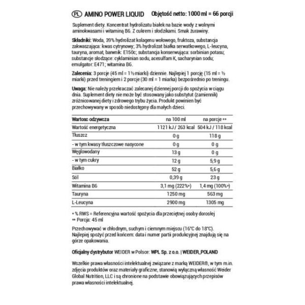Weider Amino Power Liquid is your fast-acting amino acid solution to boost energy, performance, and muscle recovery on training days.