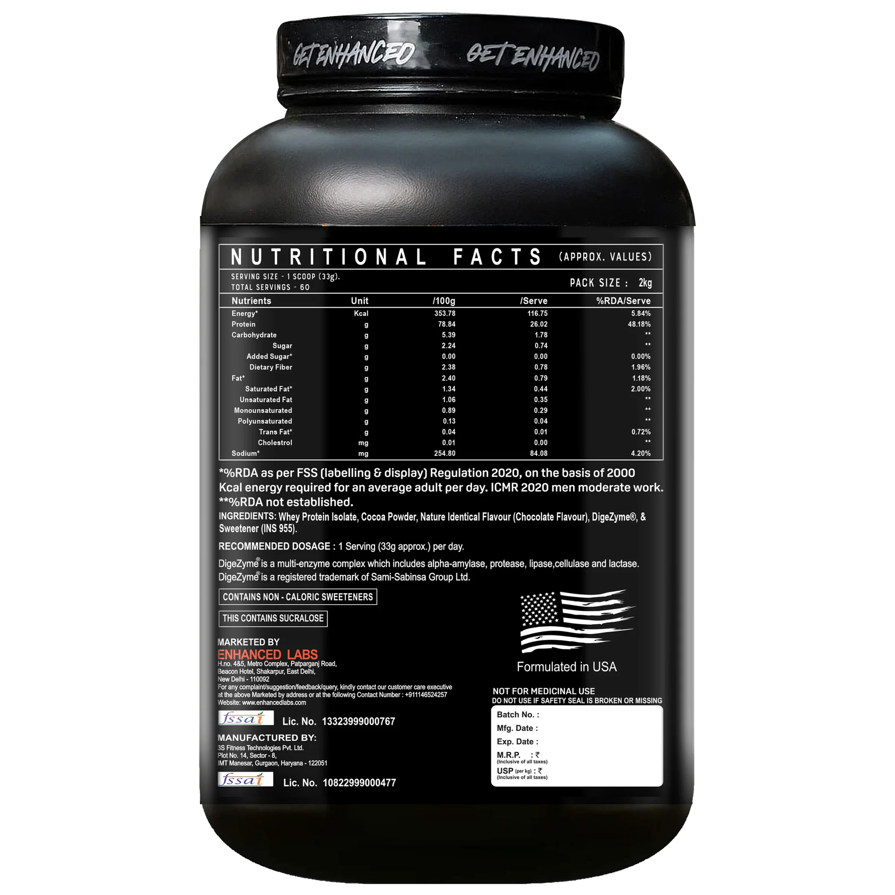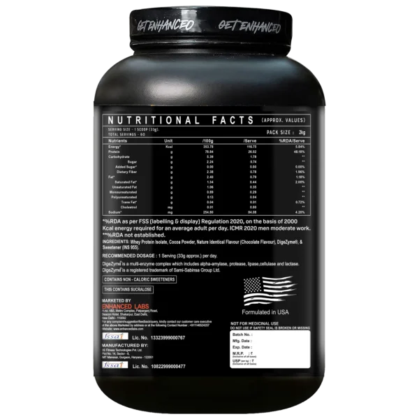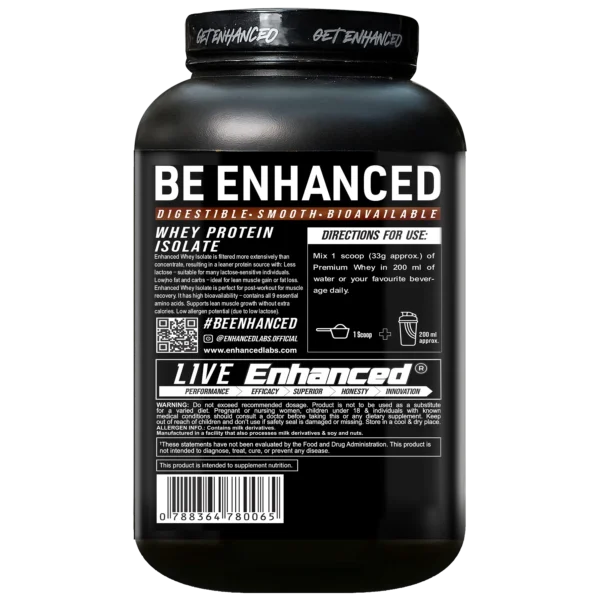 Enhanced Whey Protein Isolate is a premium, ultra-filtered protein source designed for serious athletes and fitness enthusiasts. With 26g of fast-absorbing protein per scoop, with low/no carbs and less lactose, it’s ideal for lean muscle growth, and post-workout recovery for all ages.